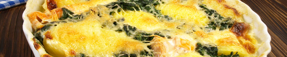 mit Zwiebeln und Käse überbacken